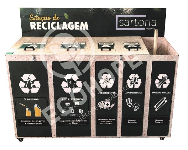 EcoPonto / Ponto de entrega voluntária ecológico (PEV). A EcoHope produz pontos de entrega voluntária ecológicos práticos e organizados para que resíduos sejam devidamente separados para a correta destinação à reciclagem.